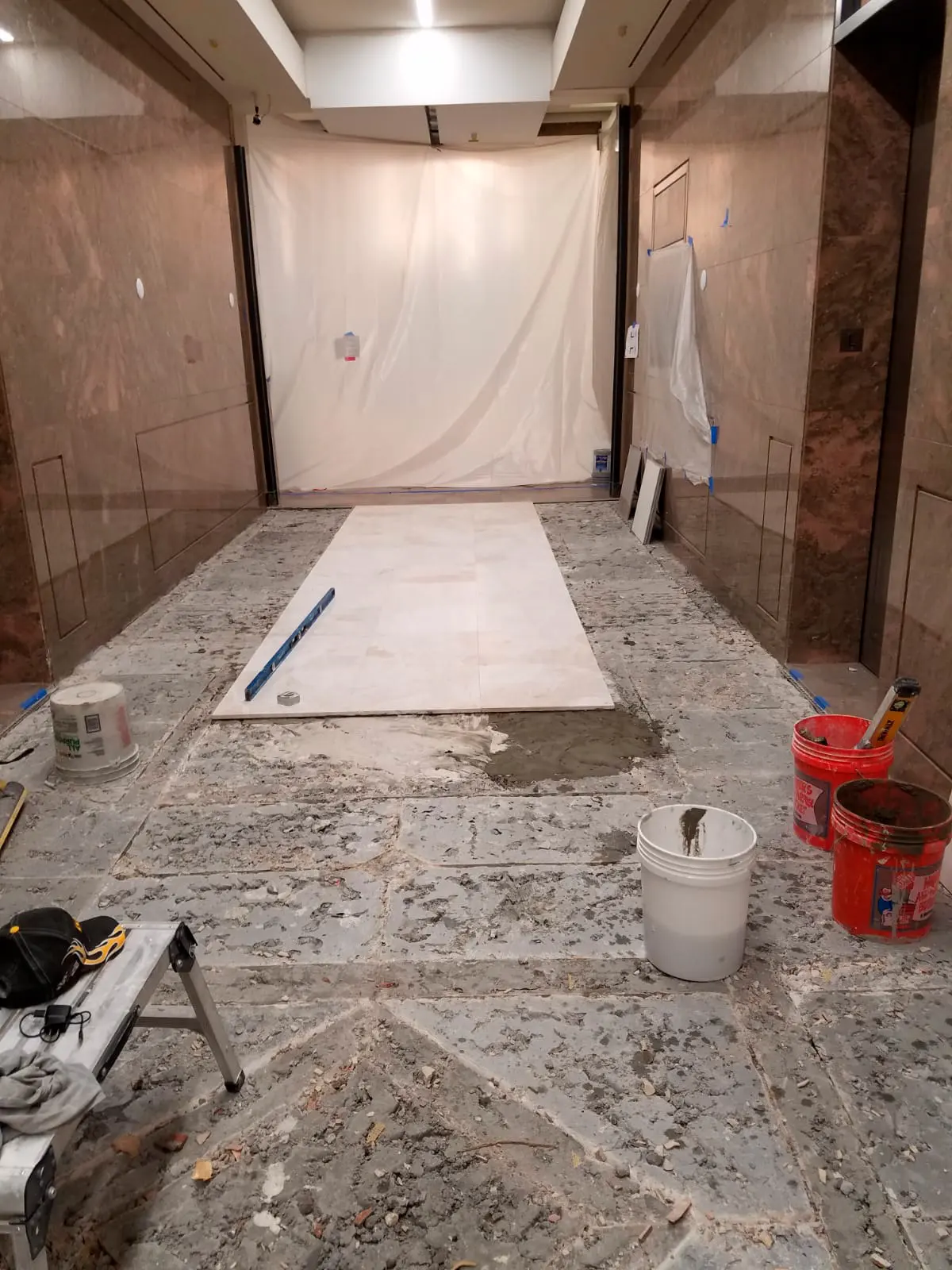 The Project was conducted under the general supervision of Mike Miller (Stiles Construction Co.) and consisted on the remodeling of the lobby floor including corridors and elevators (approximately 2000 square feet).